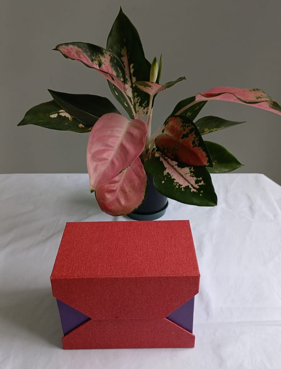 Caixa feita em cartonagem com divisoria.